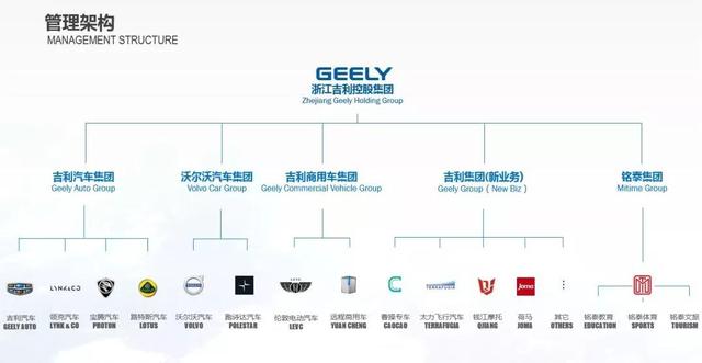 截至目前,吉利集团已拥有吉利、沃尔沃、领克、宝腾、路特斯等十大品牌。