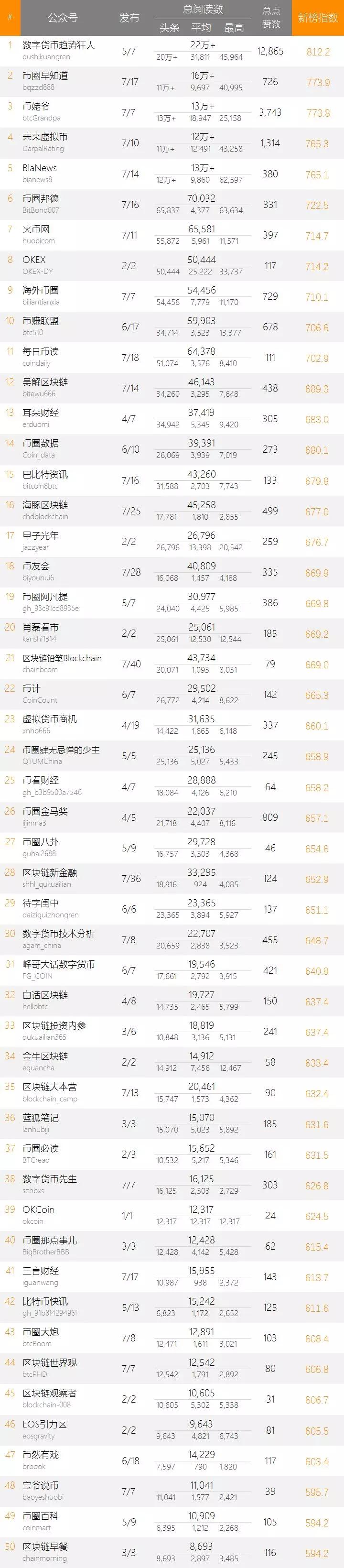 区块链相关自媒体50强(2018.2.12~18)