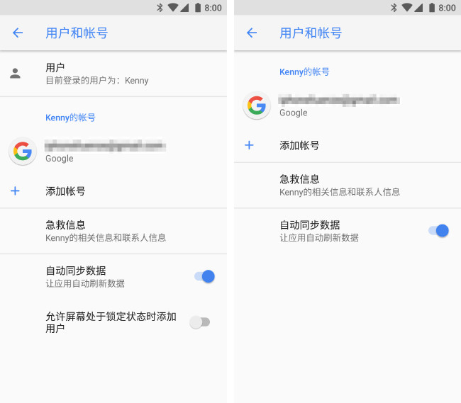 同样被 Android Go「阉割」的特性还有多用户功能,「用户和账号」中的「用户」选项直接消失不见,自然也无法启用访客或是添加新用户了: