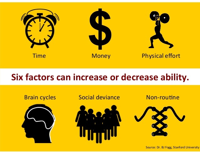 当然,要想使单个的用户行为成为现实,“B=MAT”这一公式中的任何一个要素都不能少。没有明确的触发和强烈的动机,用户行为就不可能发生。但对于技术公司来说,是否能获得丰厚的投资回报往往取决于能否提高产品使用的简易度。