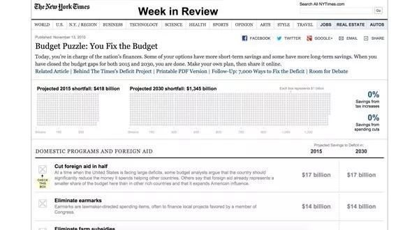 为了跟上信息获取民主化和用户赋能的全球趋势,以下可视化数据在提高国家预算平衡过程中的透明性方面做得很好。通过将预算平衡交于日常用户手中,该项目发掘集体思维的力量来解决大问题。