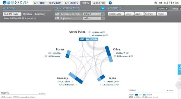 这个信息图采用详实的数据材料,如参数和数字,并以赏心悦目和简洁的方式呈现。该设计不仅简单实用,而且为用户提供了许多与图形交互的选项,如添加国家、指标和关系类型等。