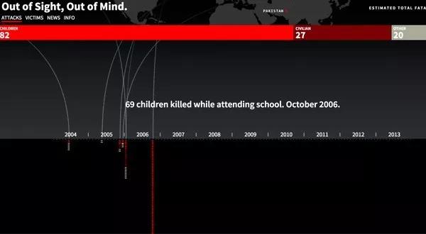 有效的可视化数据不仅以令人信服的方式传达信息,还讲述了一个值得讲述的故事。例如,这篇文章讲述了巴基斯坦已经为人所知的每一次无人机袭击和受害者的故事。通过将信息提炼成易于理解的视觉格式,这个信息图表将不应忽视的令人不安的事实带入人们的视线。