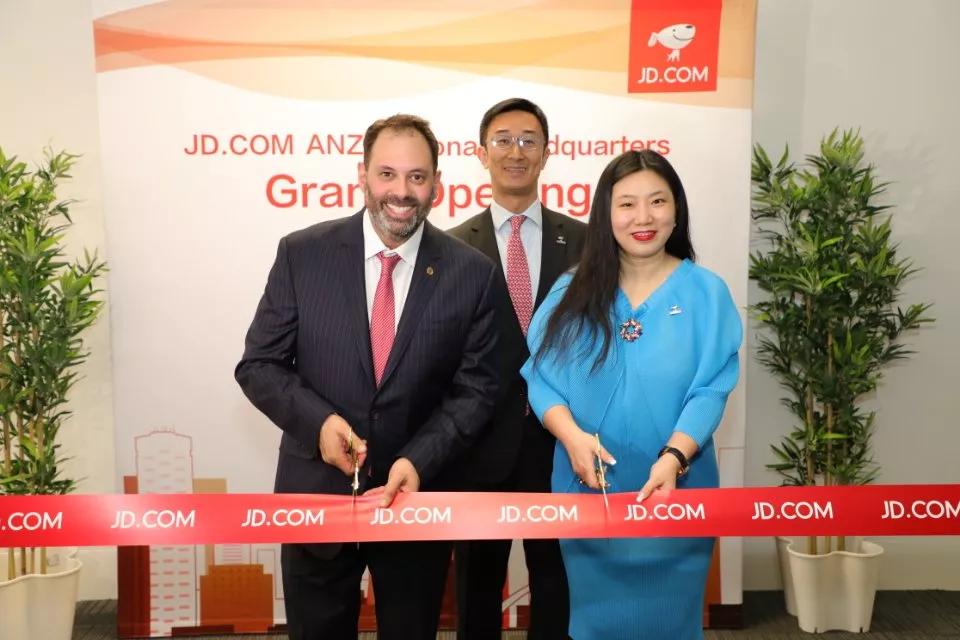 澳大利亚维多利亚州创新及贸易部长Philip Dalidakis、京东集团首席人力资源官兼法律总顾问隆雨、京东国际业务总裁郑孝明等人出席开幕仪式。