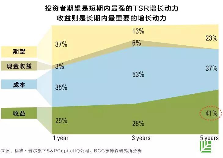 BCG分析发现,成功从TSR降低中恢复过来的企业在转型努力的第一年主要依靠的是成本削减。而投资者期望为短期TSR恢复提供的动力,与成本相比还要更高一些,突出表现贡献率达37%。
