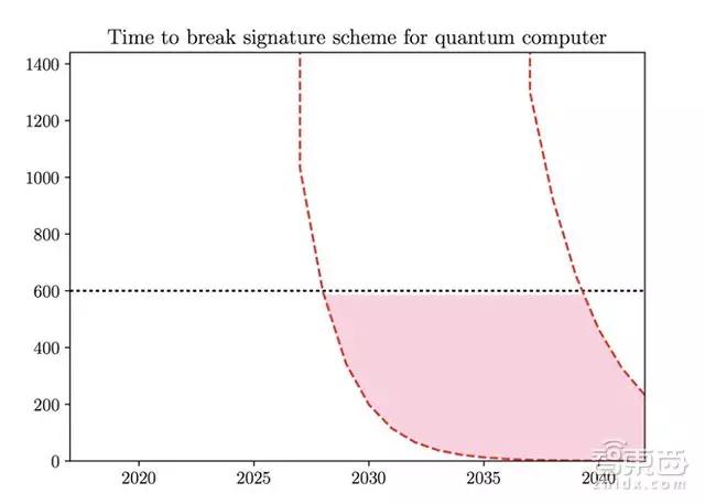 ▲量子计算机破解加密签名所需时间预估 | 单位:秒,预计2027年只需十分钟/600秒