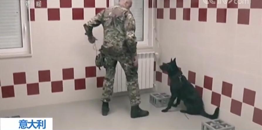 视频中显示,军犬闻到第三个尿样时坐下来了