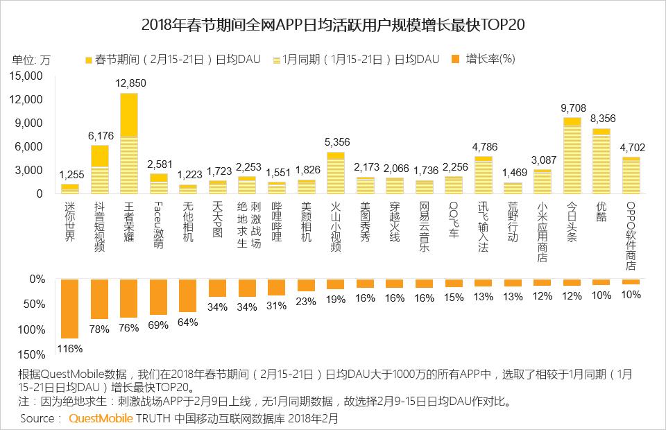 2018年春节娱乐洞察:王者荣耀平均日活过亿,吃鸡游戏、头条系增长表现亮眼
