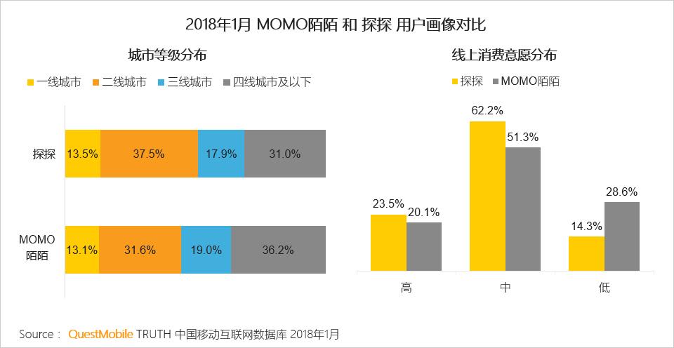探探的一二线城市用户超五成,这部分人群的经济收入水平较高,同时线上消费意愿也较高,具有较强的消费潜力和营销价值,将有助提升陌陌的商业变现能力。