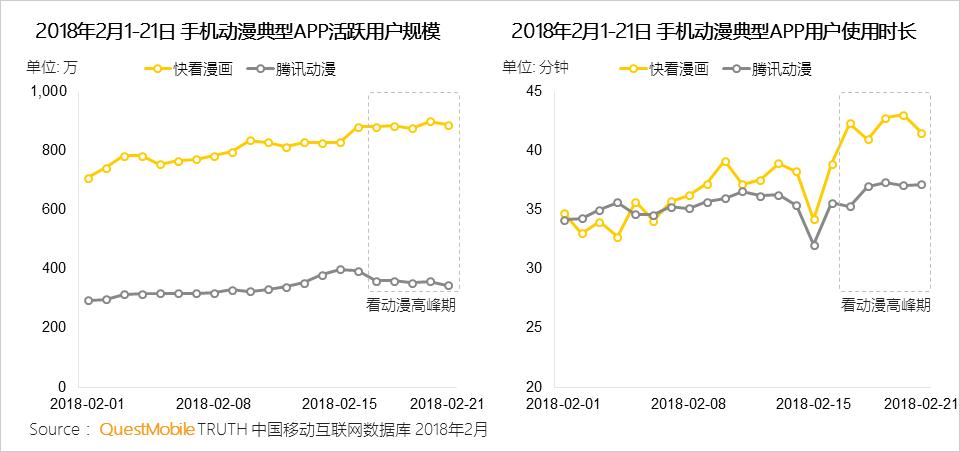 手机动漫整体在春节期间用户规模和使用时长双增长,除了除夕当天,手机动漫APP用户使用时长有所下滑,随后迅速回升并达到新的高点,看手机动漫已成为春节主要休闲娱乐方式之一。