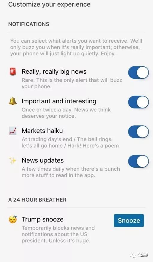 到底还能有什么新主意?相对于国内大多数资讯APP的“一键全开/全关”,国外诸多内容产品已经尝试了各种个性化玩法。
