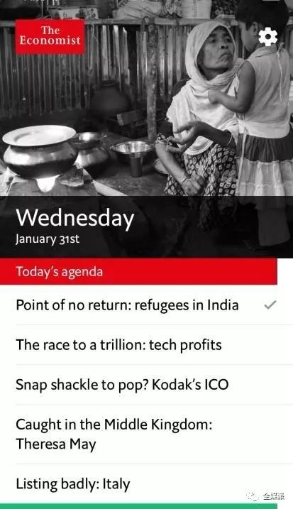 经济学人的Espresso会在每天为用户精选“5+1+1”套餐(五个短篇新闻+一个全球新闻集合+市场动态),使阅读更加轻量化。当用户阅读完一篇文章后,首页文章标题后面便会出现“√”标识,这种如同待办事项的设计不仅会让用户得到迷之成就感,还会培养用户每天阅读的习惯。