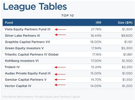 5、前十大私募股权公司中有六家重点关注软件,这可能不是一种巧合。