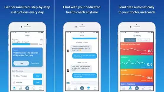 Virta Health美国创业公司,成立于2014年,2017年3月已获得3700万美元融资。Virta Health使用机器学习技术,围绕糖尿病患者营养问题提供帮助。Virta为客户提供记录血糖和血压等信息的设备。患者将数据输入Virta应用程序,然后可以由指定的临床医生和健康教练(可通过短信或视频聊天)持续监测。