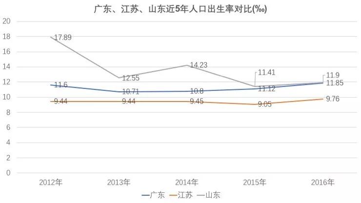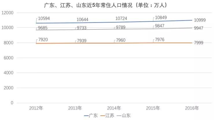 如果看人口出生率,山东明显高于广东和江苏,以前人多可能不是优势,但是现在各个城市都在开启“抢人大战”,山东会不会因为人口优势和前两名缩小差距呢?