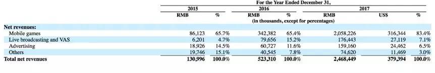 跟所有视频网站不一样的是,提供了83.4%收入的不是广告,而是游戏业务。