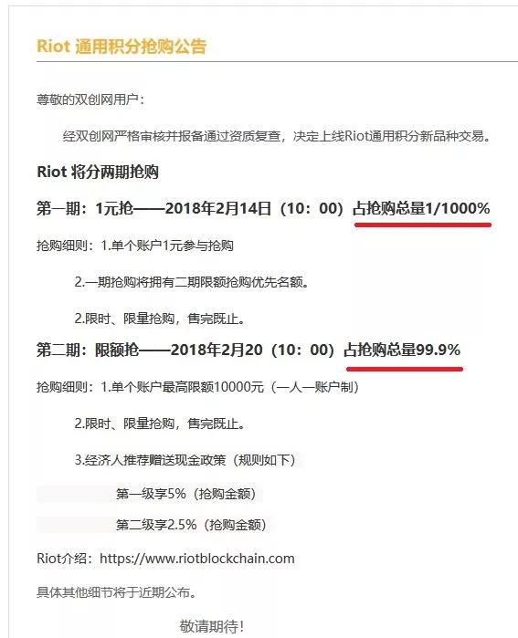 更重要的是,Riotblockchain官网只字未提有个中国交易所正在现金发行他们家的积分。