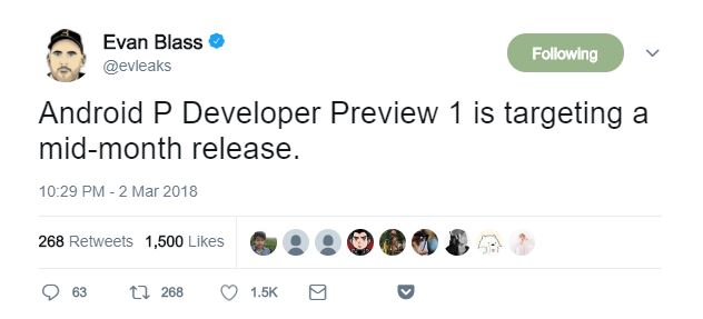 爆料大神 Evan Blass 在 Twitter 上简单粗暴的消息显示,下一代 Android 操作系统的第一个开发者预览版将会在 3 月中旬放出。