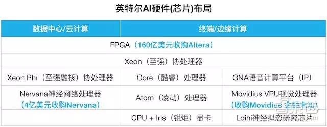 最先响应是全球各大传统芯片巨头们,英特尔、高通、ARM、联发科等都陆续进场。而这其中,称霸芯片市场十多年的英特尔更是重金出仓,一路“买买买”,布局了众多AI芯片产品线,云AI芯片与端AI芯片都有所涉及。