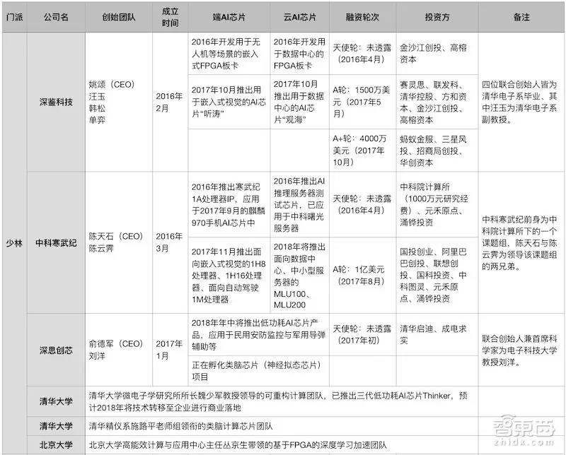 在动辄融资上亿元融资的催化之下,中国AI芯片创业市场尤为兴盛,不仅从2015年之后陆续涌现出一批AI芯片创业公司,还催生了不少独角兽企业。根据创始团队背景、公司属性、技术流派等特点,国内的这些AI芯片创业公司可以分成“少林、武当、五岳、明教”四大派系。(在智东西对话框回复“AI芯片江湖”获取AI芯片四大门派企业信息汇总表)