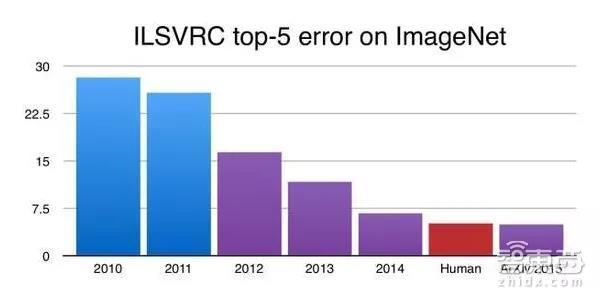 在2015年的ImageNet大赛上,微软亚洲研究院团队更是凭借GPU与深度学习算法,第一次让计算机的识图能力超过了人类。人类识图错误率约为4%,而冠军团队机器识图的错误率为3.57%。