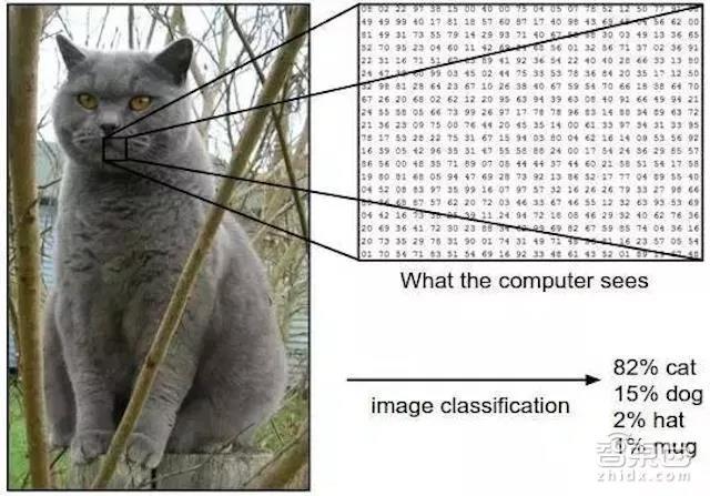对于人类来说,我们看到了一只在野外坐着的灰猫,而对于计算机而言,它看到的却是图像中的一组数字;我们看到的猫耳与猫眼,在计算机看来只是数字88和23的区别。