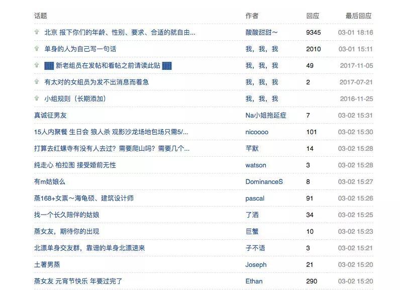 曾经火爆一时的咆哮组、吃喝玩乐组、文艺青年装逼会等知名小组,甚至于各种租房、学术小组,都这么不知不觉地干起了“兼职”,成为了文艺青年们无处安放的荷尔蒙集散地。
