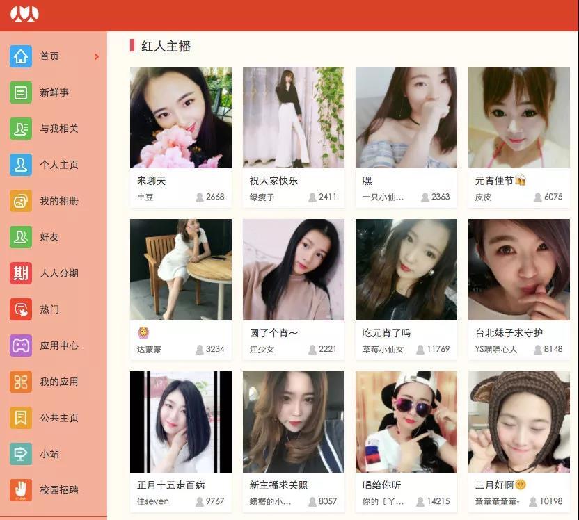 好好的校园社交巨头人人网,一开始多么单纯美好啊,不知道从什么时候开始,原来“上人人找朋友”的口号,就变成了“上朋友找人人”;开始押宝直播业务之后,首页上充满荷尔蒙气息的主播小姐姐们,也让人有了更多的想象空间。