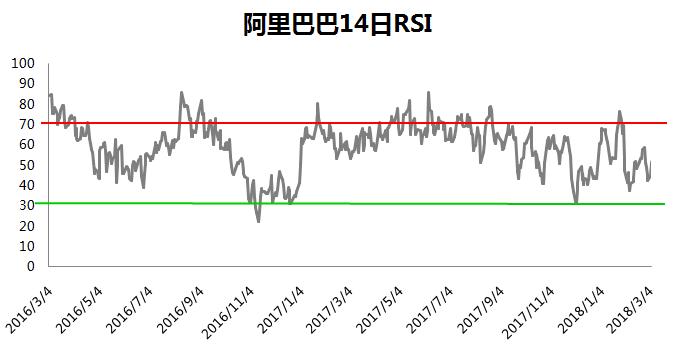 阿里巴巴目前的14天RSI(相对强弱指数)为51,通常RSI大于70被认为是超买,小于30则是超卖。