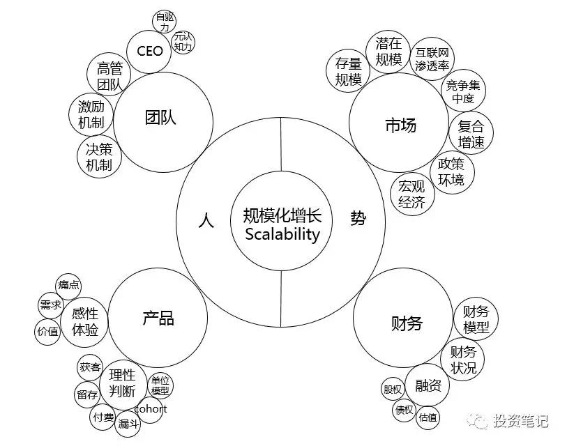 一元生两仪,两仪生四象。所有成功都各不相同,但却有共性深藏其中,规模化增长能力/Scalability,就是商业的元。从百年前福特推出T型车实现汽车量产化二十年间销售1500万辆,到1977年苹果推出AppleⅡ将电脑从商用领域引入个人家用十年间销售五六百万台,从Facebook全球月20亿活跃用户到微信10亿月活用户,“规模化增长能力/Scalability”都是一切商业最核心的成功要素。