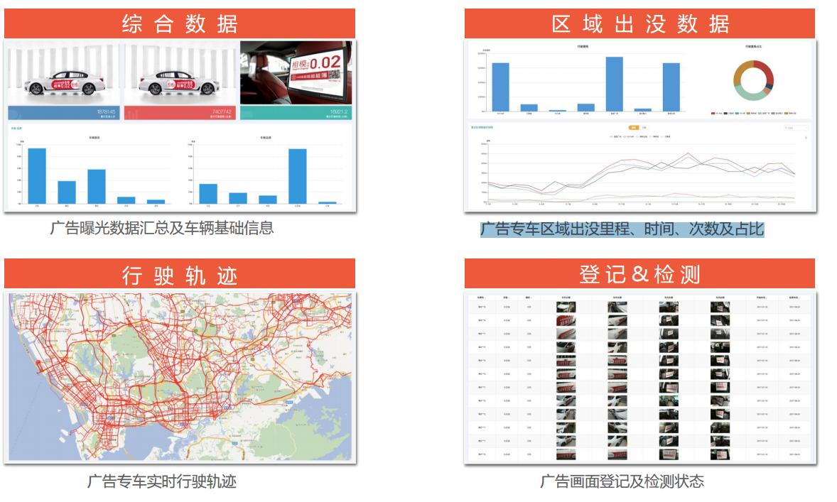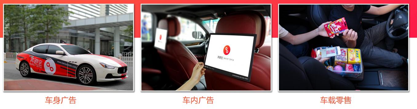 具体来说,主要有3种广告形式:车身广告、车内广告(在驾驶、副驾驶座后面搭建广告框)和奔跑易购(车内体验式营销)。
