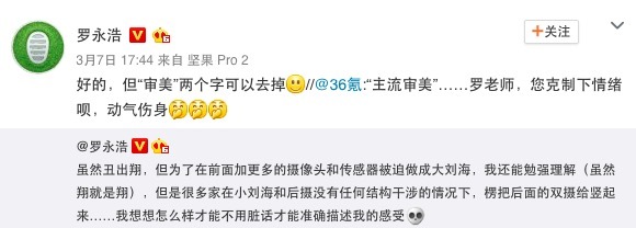 昨天锤子科技CEO罗永浩还在微博上diss刘海儿设计,大概的意思就是“太丑了”。