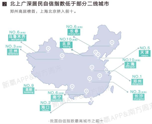 可以看到,北上广深居民自信指数低于部分二线城市。
