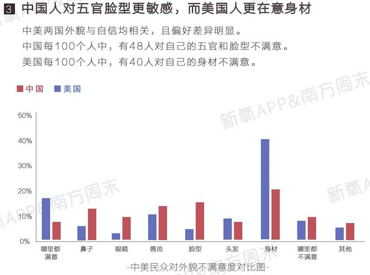 中国每100个人中,有48人对自己的五官和脸型不满意。