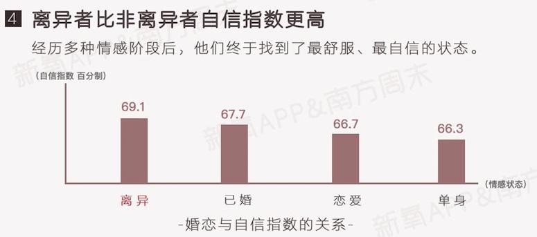 离婚并没有使民众的自信心下降,相反经历多种情感阶段后,他们找到了相对舒服、自信的状态。