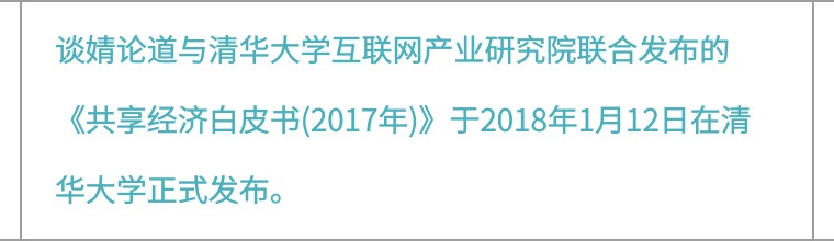 在这个时点上,投资人谈婧联合清华大学互联网产业研究院进行了长达数月的调查和研究,形成了长达五万字的研究报告。谈婧是共享经济第一批一线运营者,曾是优步中国战略运营联席主席,现在风险投资领域持续探索新经济模式。清华大学互联网产业研究院长期深入研究互联网商业模式、传统企业新经济转型,拥有对实业企业案例的深入理解。白皮书对共享经济进行了清晰的定义和分类,从全国3000多家共享经济平台里面选取了48家主要企业重点分析,总结出了主要行业、主流模式,并针对各个行业和模式的主要特征、挑战、趋势进行了较具深度和实战价值的研究和判断,给予企业、投资人和监管机构以参考和建议。