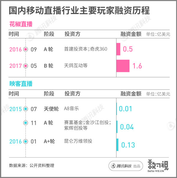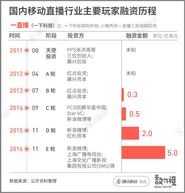 以下是国内移动直播行业主要玩家融资历程(为方便比较,融资金额按实时汇率统一换算成美元)。