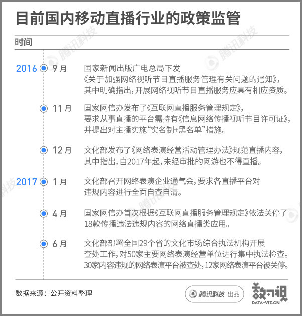 那么,国内还有哪些直播平台获得了雄厚的资金注入?这些“烧钱大战”背后的金主分别是哪些?后直播时代,乱象丛生的直播业受到了哪些限制和管理?腾讯科技将为您图解中国移动直播平台的现状。