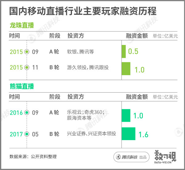 斗鱼以其近10亿美元的融资总额稳坐直播界头把交椅,紧接其后的是一直播和虎牙直播,其余诸如龙珠直播、熊猫直播、花椒直播的资本表现均不俗,直播江湖的竞争早已以“亿美元”为单位激烈展开。