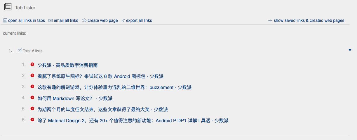 Chrome 上的 OneTab 和 Toby 这类扩展,是我抛弃 Chrome 时最舍不得的一部分。经过不断探寻,我最终找到了在 Safari 上能替代它们的方案——Tab Lister。它能让你一键关闭并保存当前所有页面,并在未来某一时刻把它们同时打开。这种操作很适用于保存当前研究或浏览的状态,并在下次需要时快速恢复。
