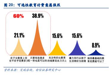 虽然人口增速放缓,但是基础教育阶段仍蕴藏着大量的人口红利。此外,据艾瑞咨询的调查,78.9%中产阶级家庭在子女课外教育上的年消费在10000元以上,60%的中产家长表示更加注重学习效果,不在乎花费或者多花费一些也可以接受。
