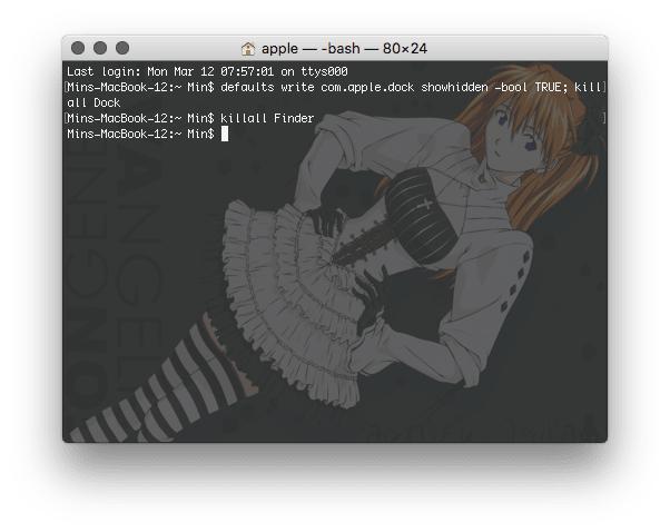 defaults write com.apple.dock showhidden -bool TRUE; killall Dock让 Dock 瞬间出现/消失: