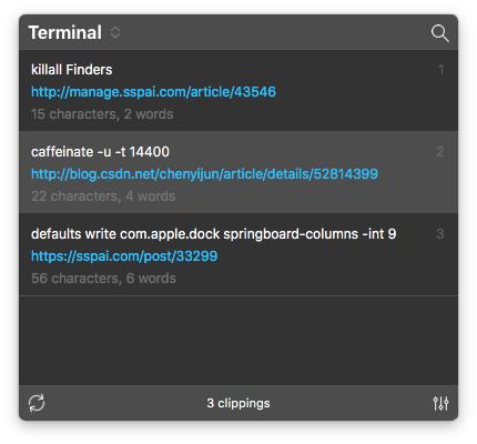把常用命令放在 剪贴板管理工具 中,随时取用。我专门在 Copied 里建立了一个命令列表,里面都是一些难记但使用频繁的命令。