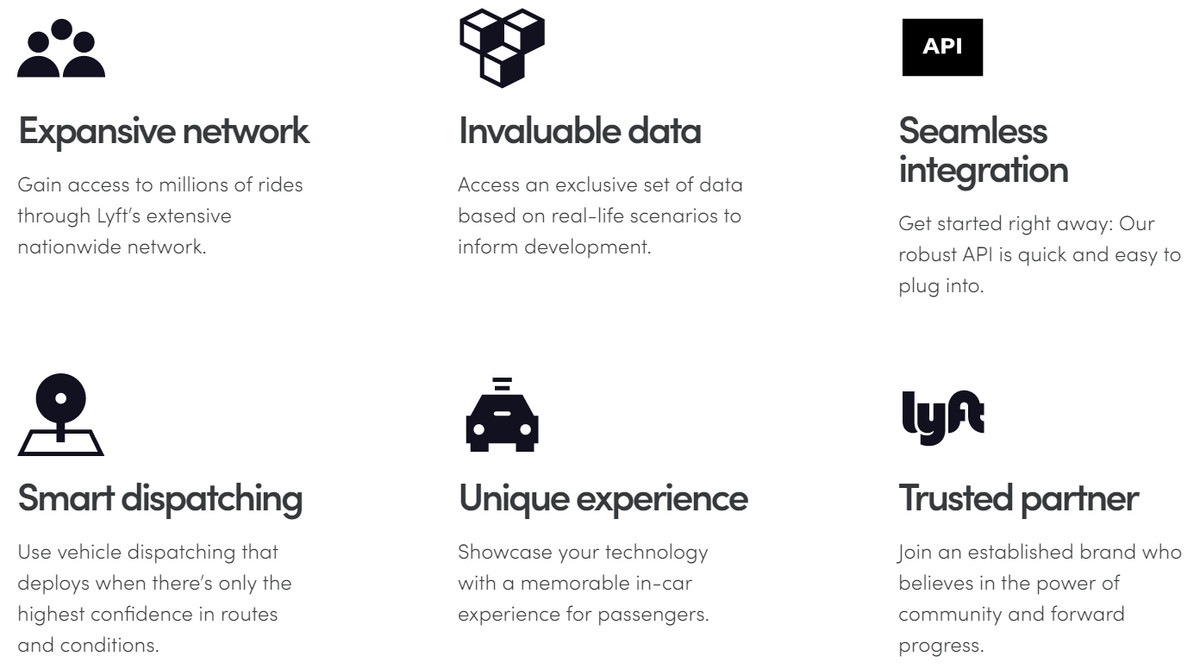 对于车厂/自动驾驶技术研发公司而言,Lyft的吸引力显而易见:这是一家订单高达100万单/天的出行服务平台。更毋论Lyft还为合作做了包括智能调度和开放API等大量工作。