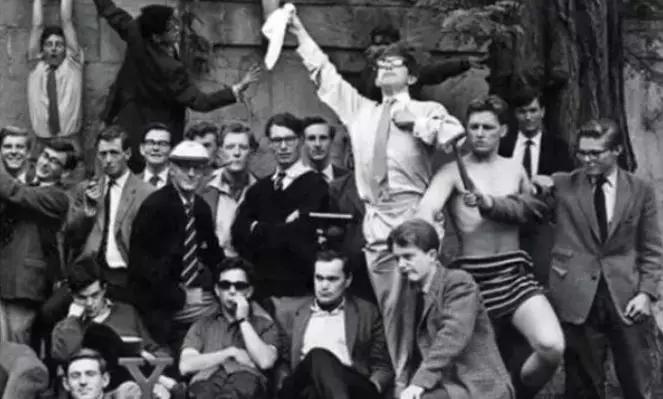 图丨霍金年轻时的照片,拿手帕的为霍金