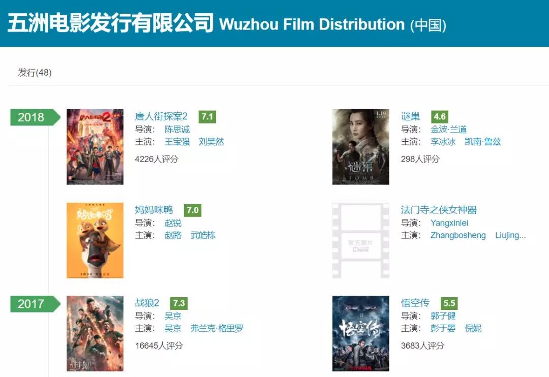 而五洲发行是万达影视、大地电影、金逸影视、横店影视四家发行公司联合成立的电影发行公司,万达影视持股40%,是大股东。“五洲发行就是万达影视的发行团队来具体操盘的,几家股东都是院线公司,而且都是民营公司,自主权比较大,能对彼此发行的影片在排片上相互支撑。”上述资深电影人表示。