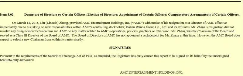 当时,为了有效控制AMC董事会,现任万达文化集团总裁、万达电影董事长张霖出任AMC董事会主席兼董事。