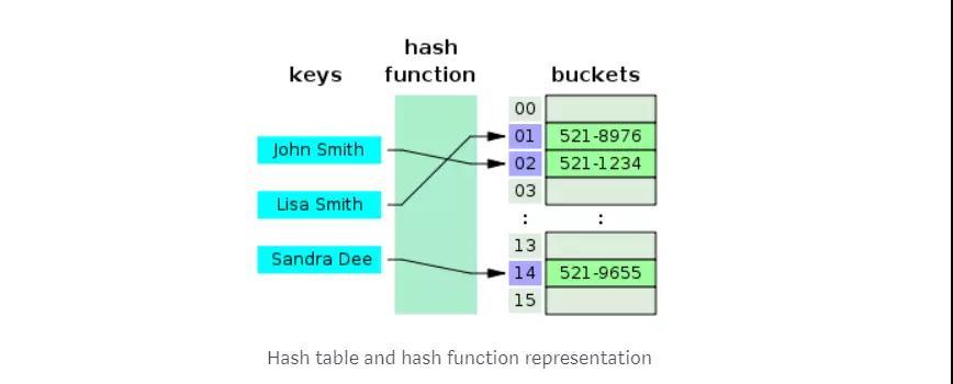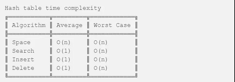 我们的目标是没有碰撞。所以当你将一个键/值对输入到一个散列表中时,这个键将通过散列函数映射到一个数字,用作值存储的实际键。 当你尝试再次访问相同的密钥时,哈希函数将处理该密钥并返回相同的数字结果,用于查找关联的值。 算法速度非常快,查找的时间复杂度仅为O(1)。