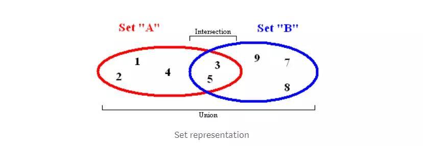 以集合形式存储的数据结构中不存在任何特定的顺序,也不存在重复的值。除了向集合中添加新元素或者删除元素之外,还有一些重要的集合函数可以进行两组集合的处理。