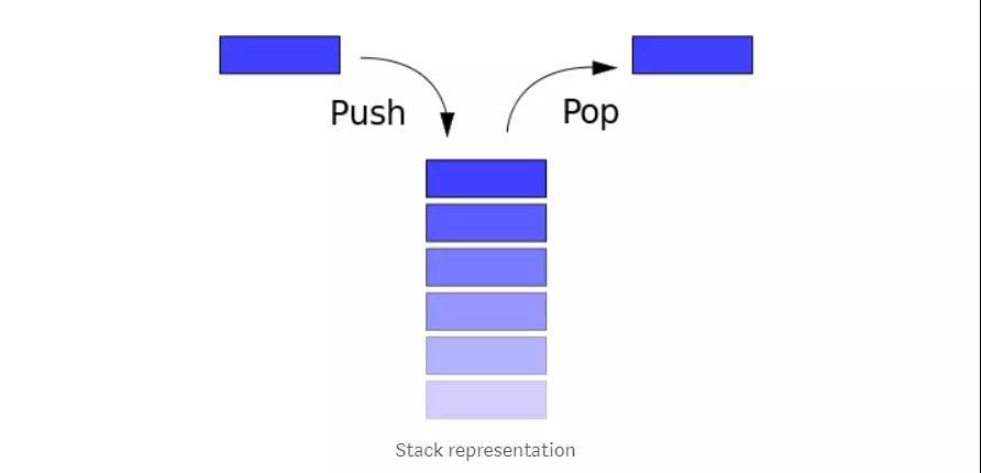 堆栈属于一种基本的数据结构,你只能在堆栈的顶部插入或删除项目。这有点像一堆书, 如果你想看堆栈中间的一本书,你必须先将它上面上面的所有书移走。